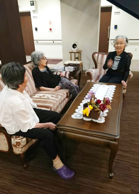 一階エントランスのソファーでは、女子トークや、新聞購読