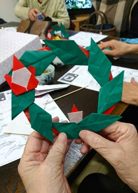 介護ステーションの折り紙教室ではクリスマスリースを作りました🎵